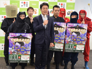甲賀市役所にて行われた9月度の定例記者会見に「甲賀流忍者大祭2018」のPRに行ってきました。